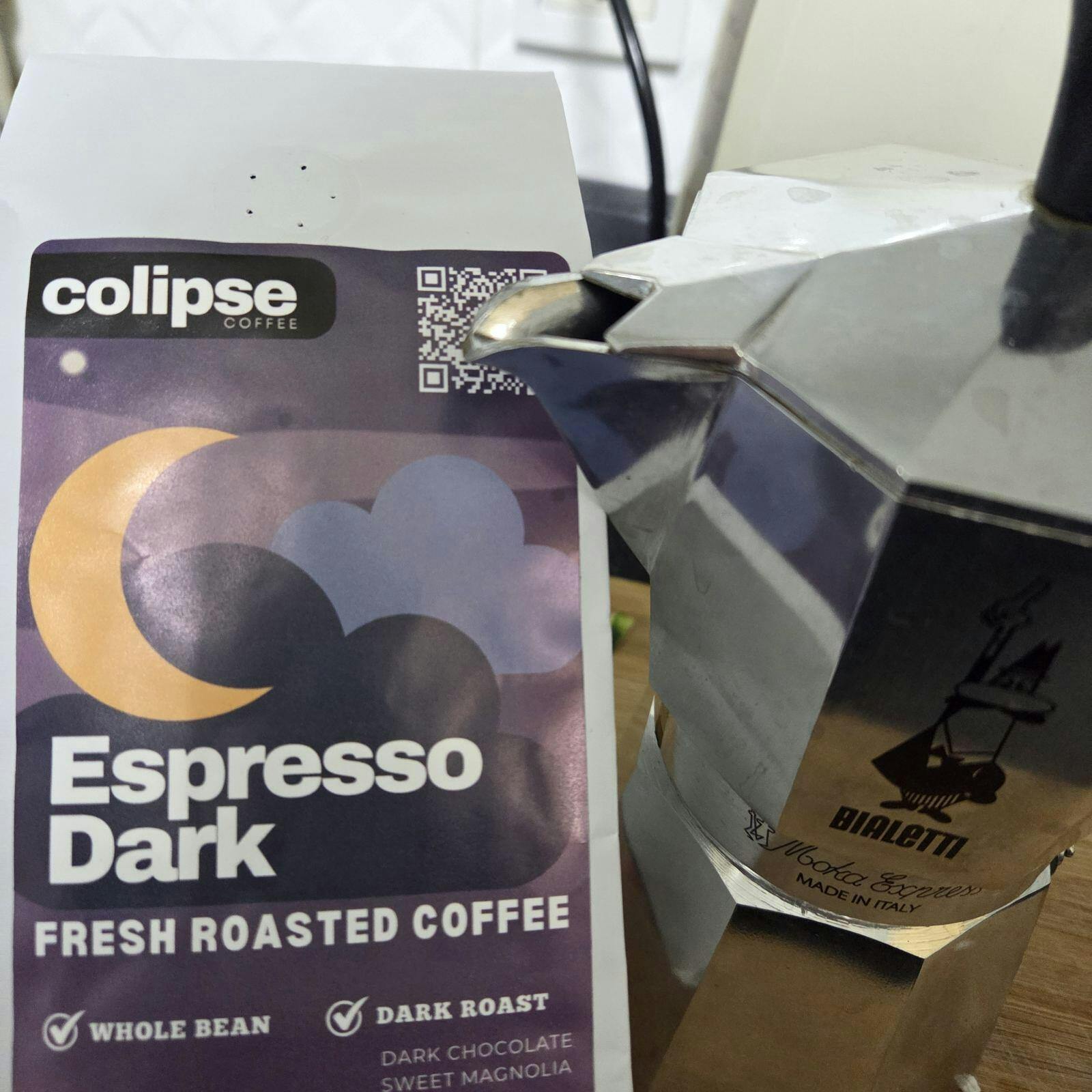 Colipse Espresso Dark offers specialty-grade, dark-roast espresso beans that are perfect for a variety of coffee drinks using methods like French press, auto drip, Moka pot, and espresso machines.