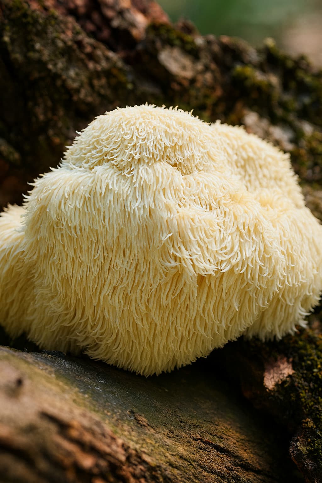 Lion's Mane Mushroom is an edible and medicinal fungus known scientifically as Hericium erinaceus. It is characterized by long, cascading spines and typically grows on hardwood trees in late summer and fall. It is used in culinary dishes and traditional medicine preparations such as teas, tinctures, and extracts.